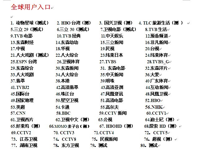 本直播机顶盒是带服务器平台的,可以稳定收看以下节目: