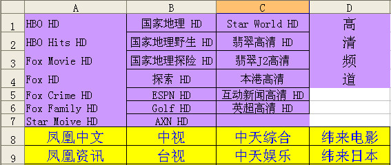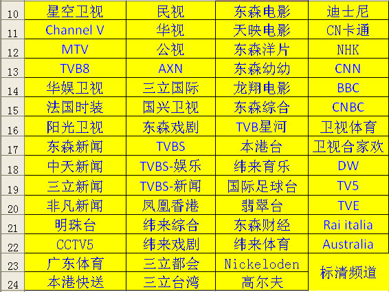 (节目不断增加中,以实际接收为准)
